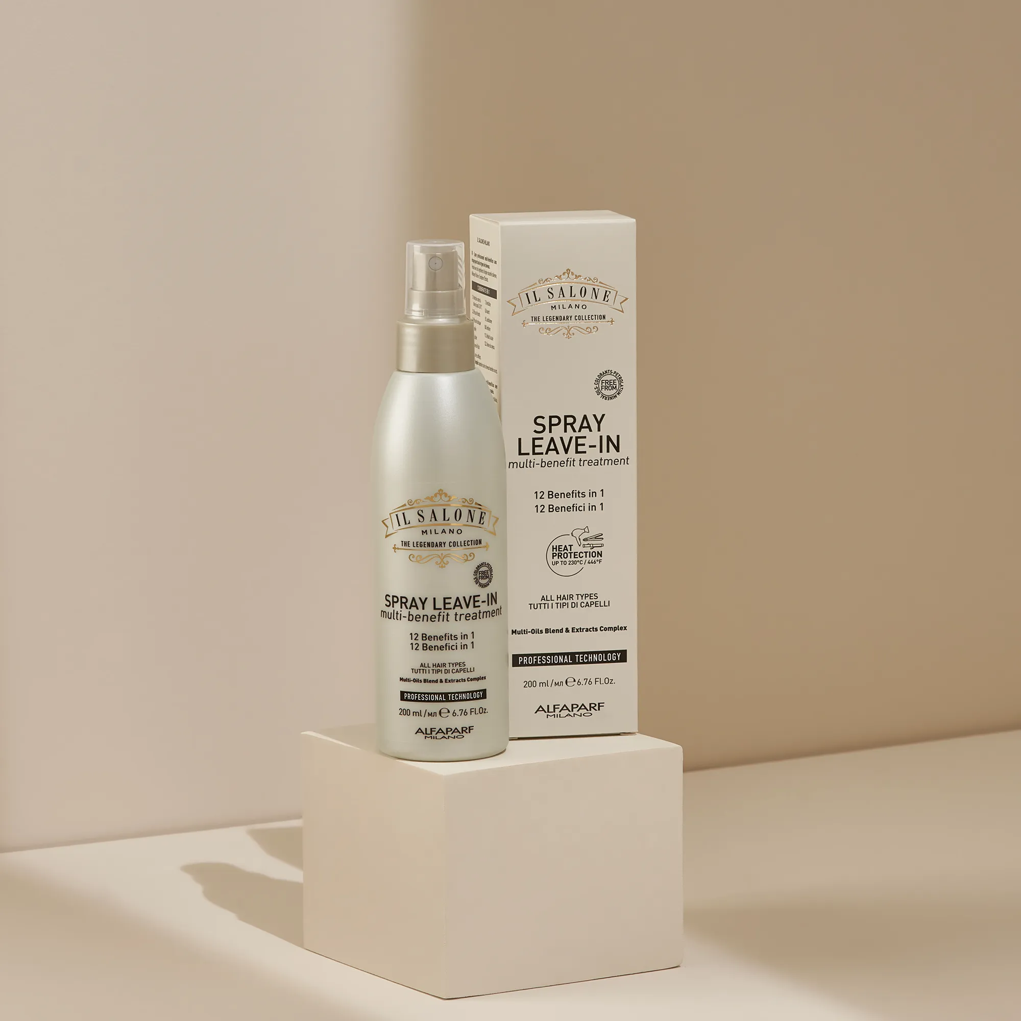 1. Термозащита до 230°C; 2. Устраняет пушистость; 3. Устраняет статическое электричество; 4. Распутывает; 5. Укрощает; 6. Усиливает сияние; 7. Восстанавливает; 8. Питает; 9. Ухаживает; 10. Укрепляет; 11. Уменьшает ломкость; 12. Делает волосы шелковистыми.