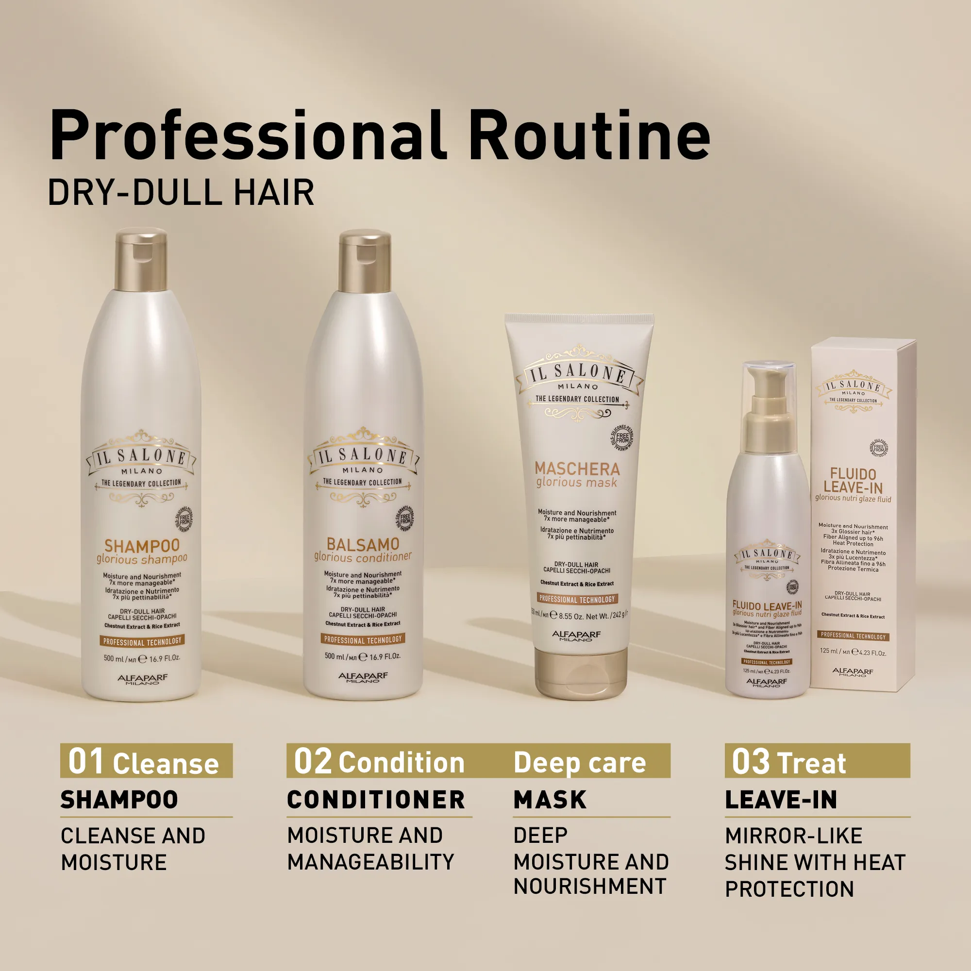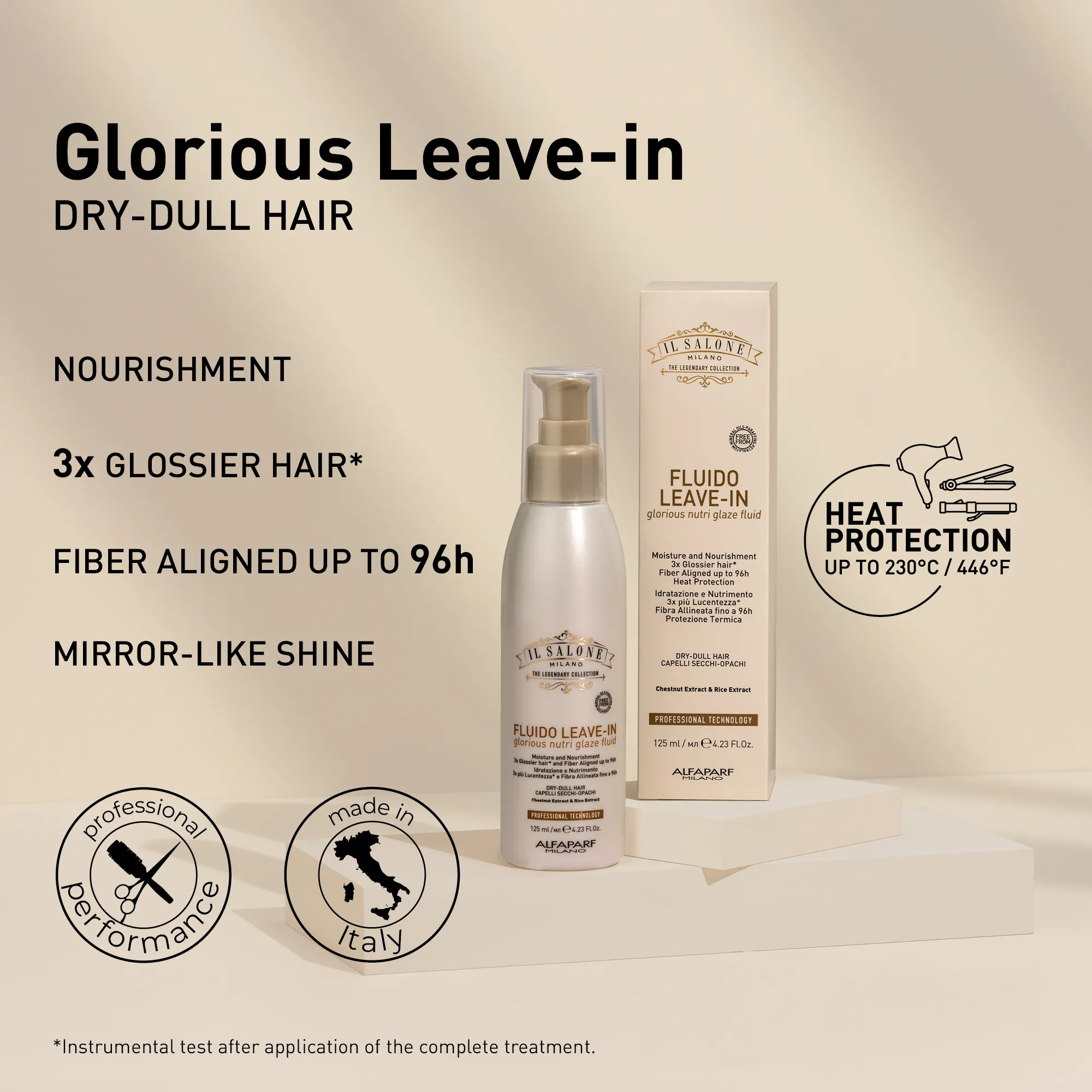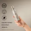 Профессиональная жидкая текстура без смывания для сухих и тусклых волос. Содержит ингредиенты натурального происхождения: экстракт риса, экстракт каштана и аргановое масло. Увлажняет и питает волосы, делая их в 7 раз более послушными. Волокна волос идеально покрываются, создавая ровную поверхность для зеркального блеска. Уже после первого применения волосы становятся в 3 раза блестяще* и волокна волос выравниваются на срок до 96 часов. Послушные, блестящие и гладкие волосы. Термозащита до 230°C (446 °F). Используется парикмахерами.